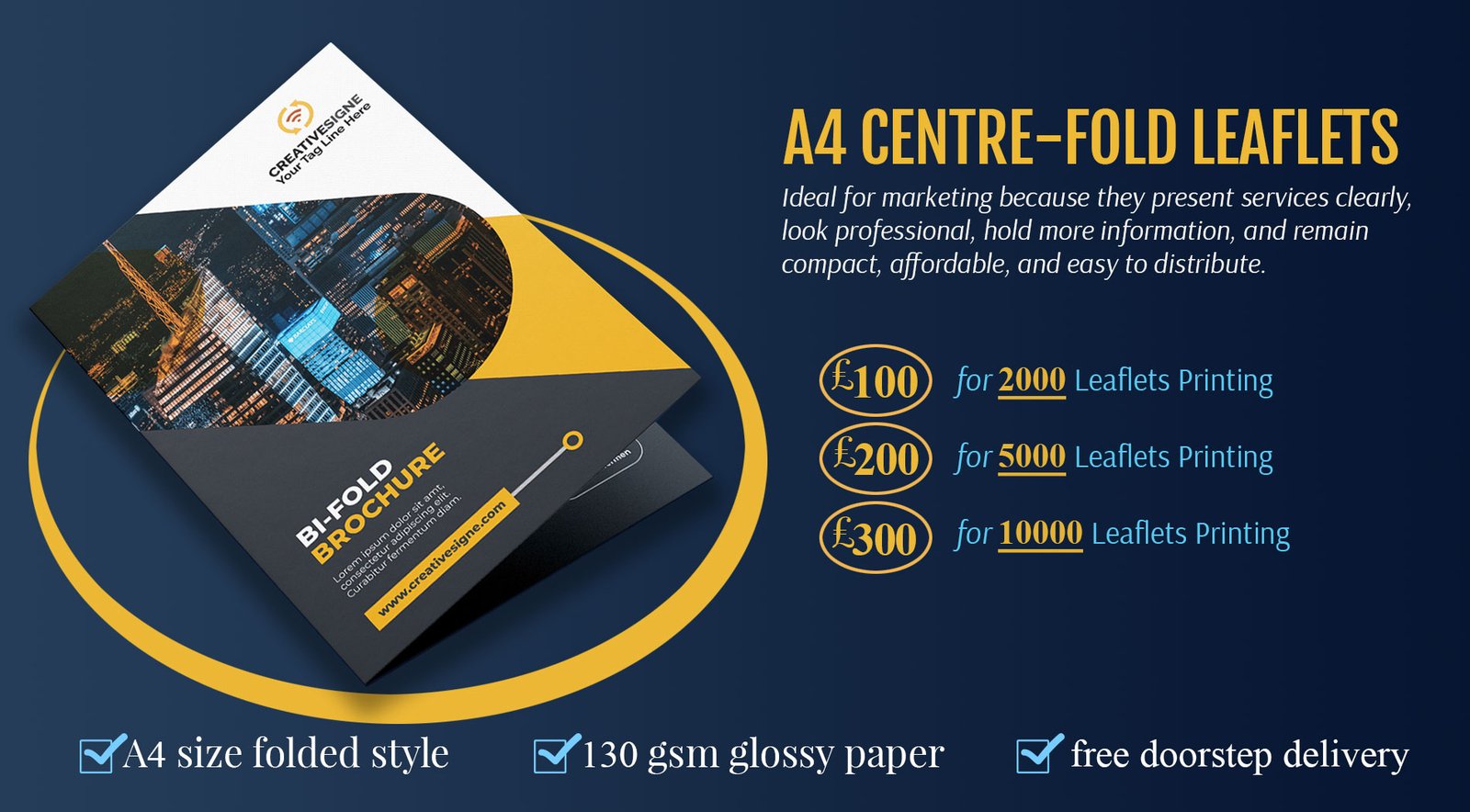 At Leaflet Printers, we combine premium paper stock with high-resolution printing technology to ensure your centre-fold leaflets look sharp and vibrant. Choose from: