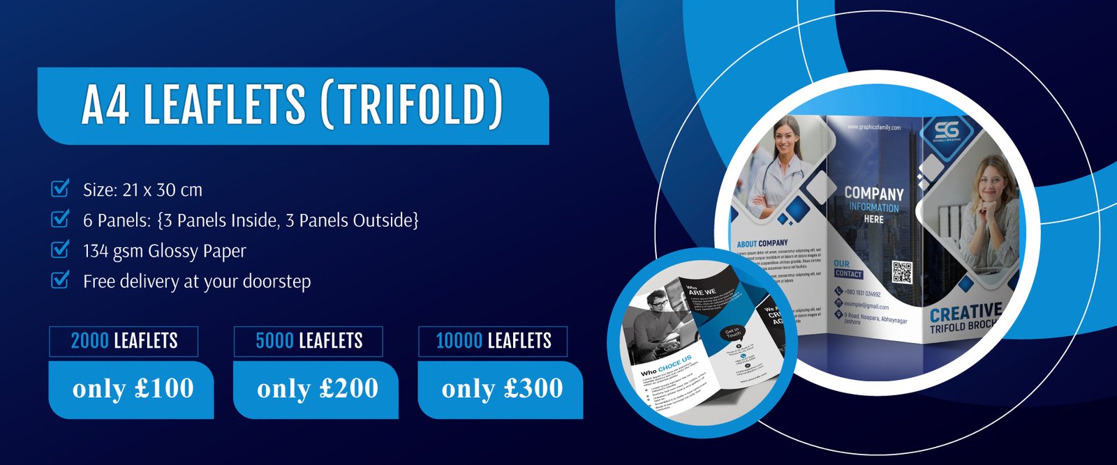 Give your business the professional presentation it deserves. Request your free quote from Leaflet Printers and get A4 tri-fold leaflets that make a lasting impression.